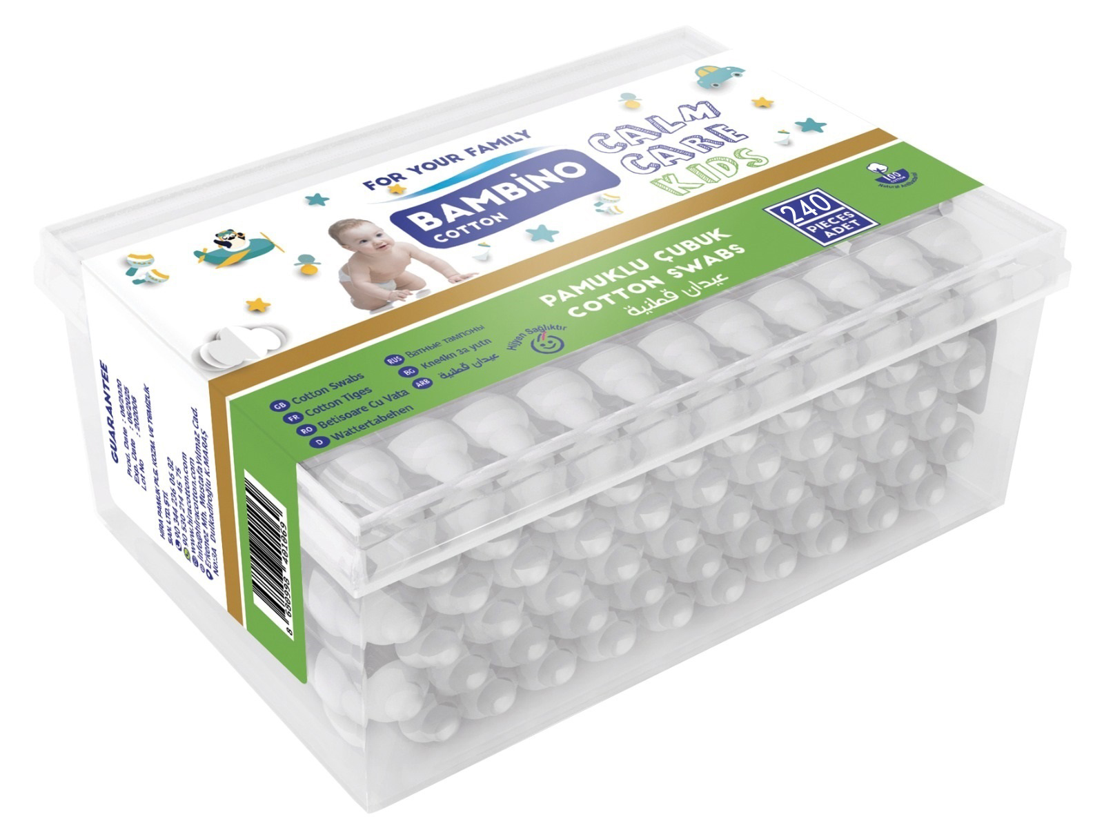 Betisoare igienice cu opritor, Bambino, 240 buc